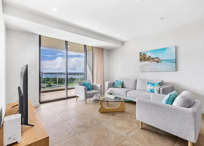 The spacious 101 m² Sweeping Ocean View Apt W Carpark And Rooftop Pool Gold Coast lies in a residential area, just 1.4 km from the large Southport Broadwater Parklands and about a 10-minute ride from the Doug Jennings Park. To diversify guests' leisure, a private swimming pool is provided.