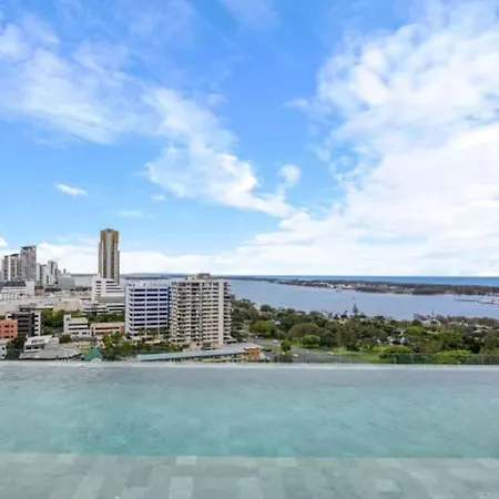 Özel yüzme havuzuna sahip olan Sweeping Ocean View Apt W Carpark And Rooftop Pool dairesi, Deniz Dünyası'dan 2 kilometre uzaklıktadır. Daire Gold Coast şehrinin Southport semtinde, Gold Coast havalimanına arabayla 31 dakika uzaklıkta yer alır.